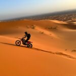 | Lundi: Alnif – Merzouga (180 km) Première étape de désert avec un hors piste de 30 km puis des pistes plutôt roulantes et sableuses pour rejoindre la très belle passe de Marecht et son oasis coincée entre les falaises qui nous accueillera pour le déjeuner. Après avoir franchi l’oued Rheris très ensablé, c’est une piste plus porteuse mais piégeuse qui nous emmènera du coté de l’erg Chebbi non loin de Merzouga ou nous finirons la journée dans les grandes dunes. Bivouac au pied des dunes. |