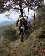| Les réglages moto (informations données à titre indicatifs. Consultez votre concessionnaire) Carburation; beaucoup de nos itinéraires se situent entre 800 et 1000 m d’altitude , se qui va induire pour pas mal d’entre vous des modifications de la carburation de votre moto, en particulier sur les 2 temps. En prenant en référence le niveau de la mer, et à supposer que votre réglage initial soit correct nous vous conseillons de descendre votre gicleur principal d’environ 5 % de sa valeur ou/et plus simplement de remonter d’un ou 2 cran le clip sur votre aiguille. Suspension ; Chez nous les terrains sont souvent rocheux . Vos suspensions ont besoin de beaucoup de réactivité pour permettre à votre moto de bien se comporter et d’économiser votre physique. Pour cela il vous faut diminuer de beaucoup votre réglage d’hydraulique en compression autant sur la fourche que sur l’amortisseur. Le montage d’un sabot de protection est fortement recommandé. Pneumatique : l’emploi de pneumatiques à profil et gomme mixtes est recommandé. La bonne pression pour une moto correctement réglée en suspension est de 1 kg pour l’avant et peut descendre à 800 grammes pour l’arrière. L’idéal étant bien entendu un système de mousses pour éviter tous problèmes. |